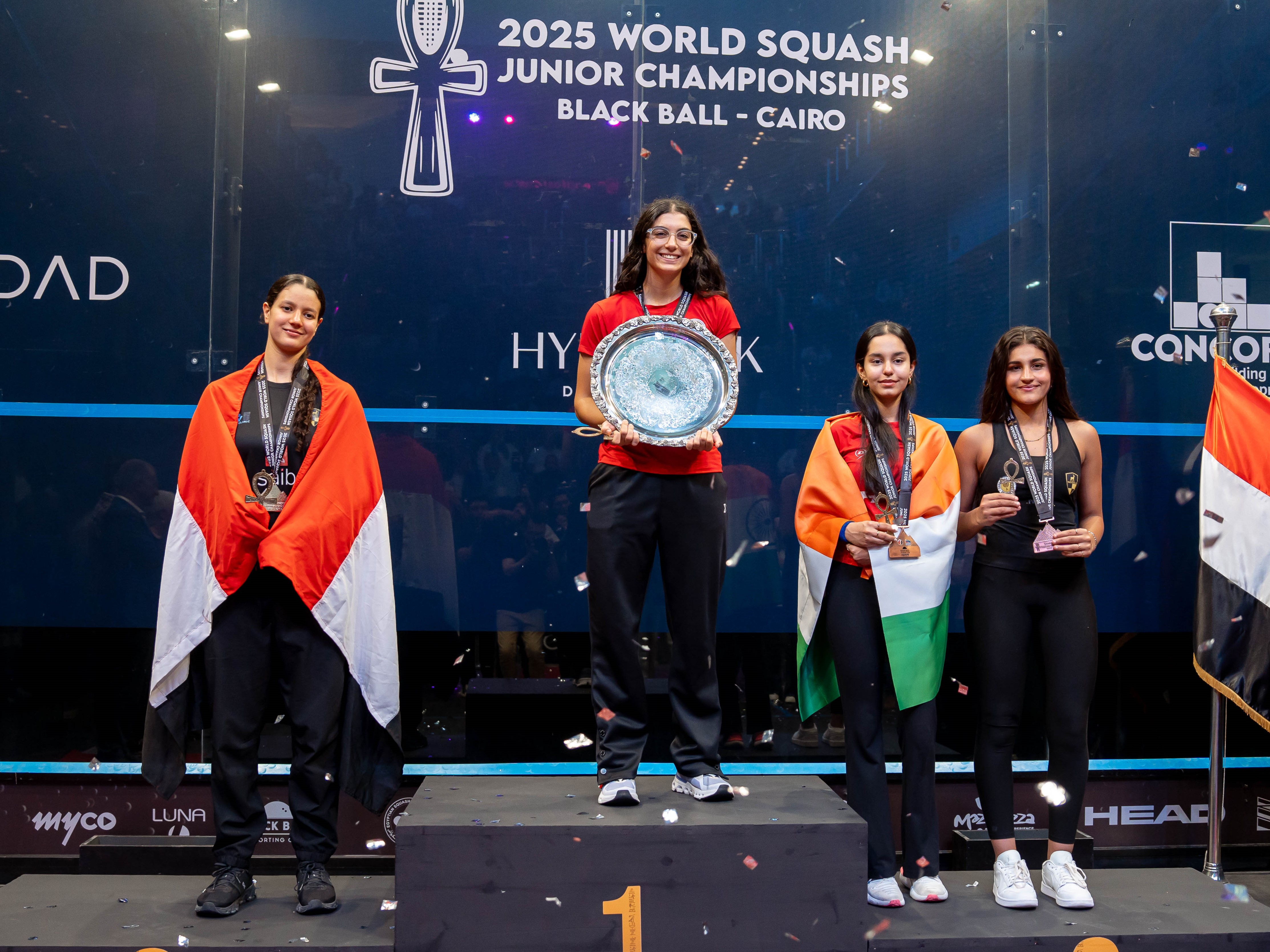 Individuels filles 🥇 Amina Orfi 🇪🇬 🥈 Nadien ElHammamy 🇪🇬 🥉 Sohayla Hazem 🇪🇬 & Anahat Singh 🇮🇳 |
